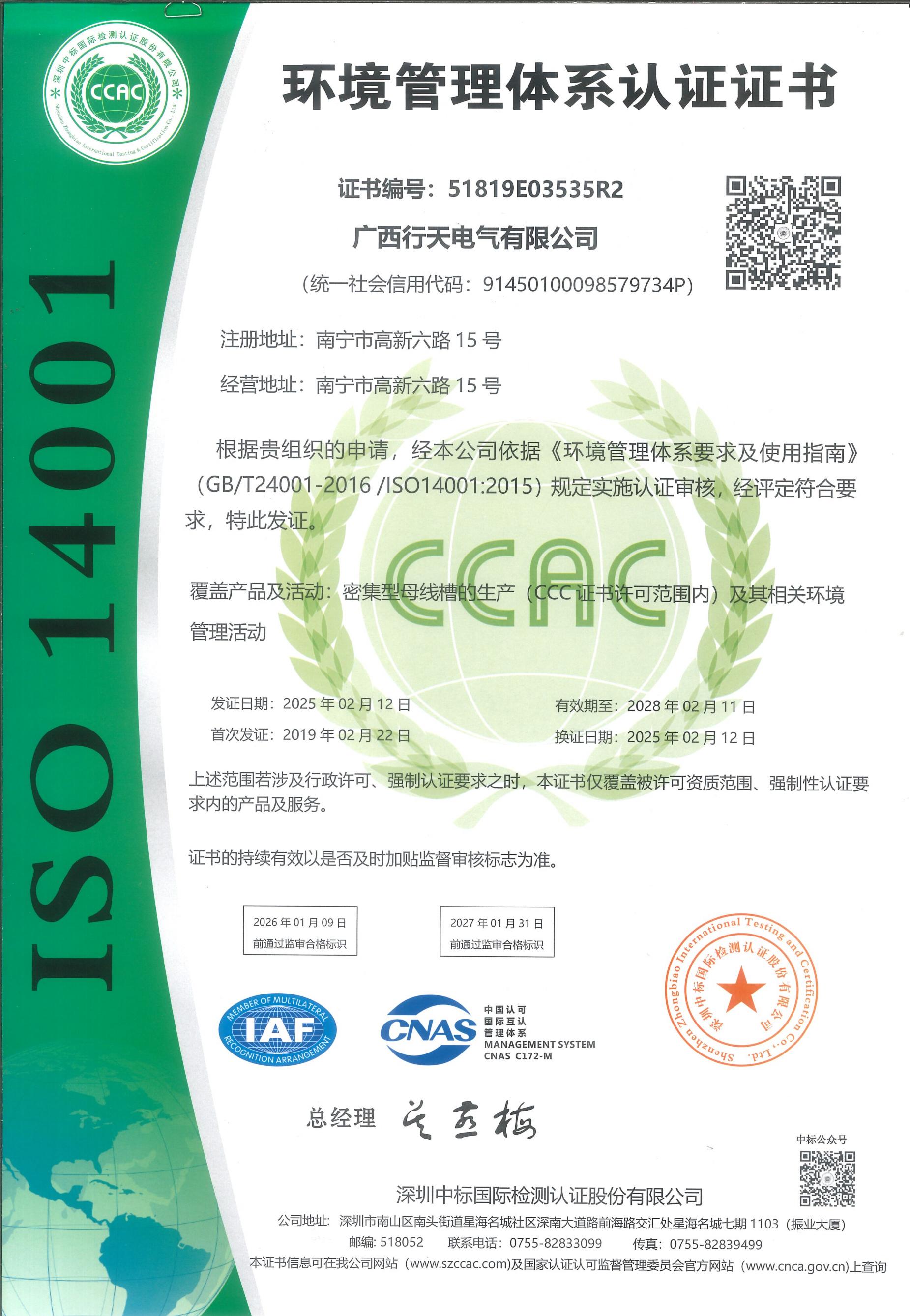 环境管理体系认证证书-ISO1